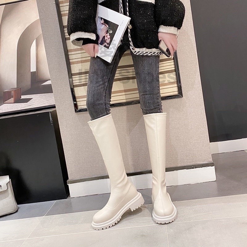 东大门火爆款?百搭素面 高筒靴【台湾现货快速出货】欧美风 高筒长靴 后拉链厚底靴 长筒靴 增高靴 军靴 骑士靴 长靴膝下