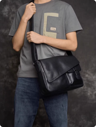 原创真皮男士通勤单肩斜挎包植鞣软牛皮小包简约男包高级感枕头包