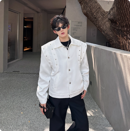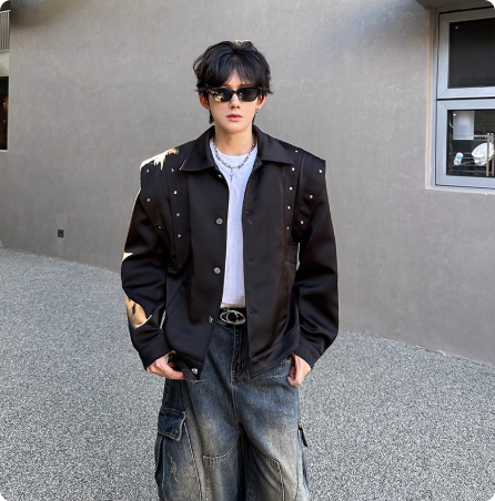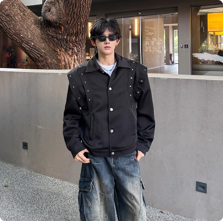 秋季新男装垫肩小众个性金属宽松飞行员长袖夹克短款休闲情侣外套
