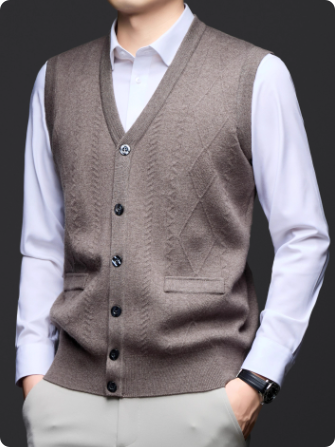 秋冬季爸爸装中老年男士羊毛马甲保暖针织外套开衫坎肩