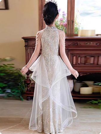 轻奢童装生日公主裙高端女童主持人钢琴演奏演出服