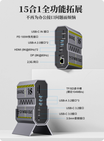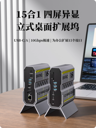 15合1扩展坞双HDMI四屏异显PD快充2.5G网口8K桌面立式拓展坞typec