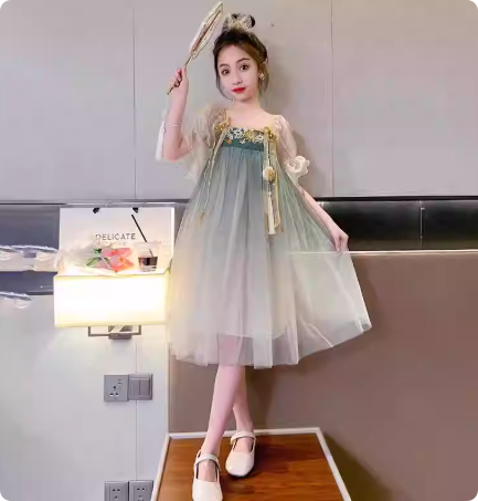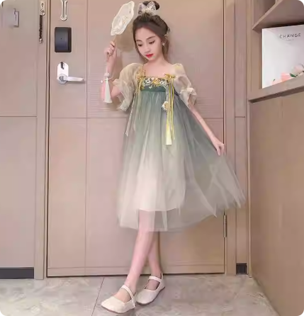 女童夏装连衣裙2024夏季中国风公主裙洋气小女孩渐变纱汉服古风裙
