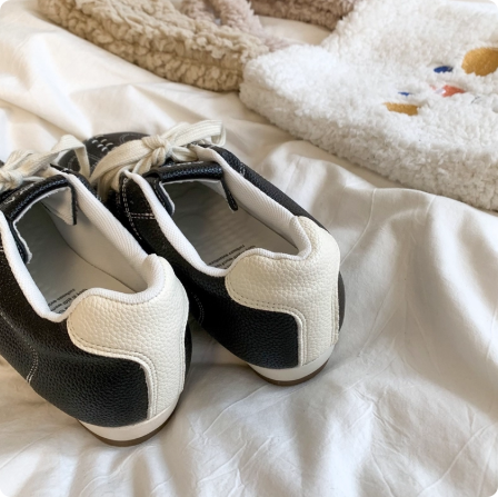 真皮松糕厚底女鞋小白鞋小个子韩版学生熊猫拼色板鞋