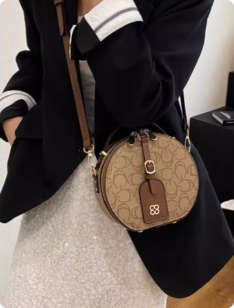 高级感圆饼小包包女2025夏天百搭印花小圆包洋气百搭斜挎手拎小包