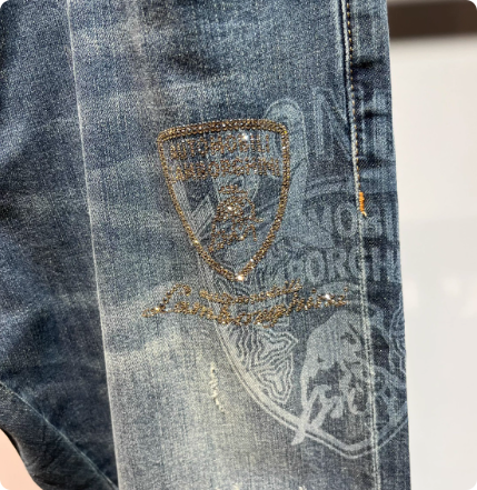 兰博基尼 春夏款男装休闲牛仔裤微弹烫钻柔软蓝23730