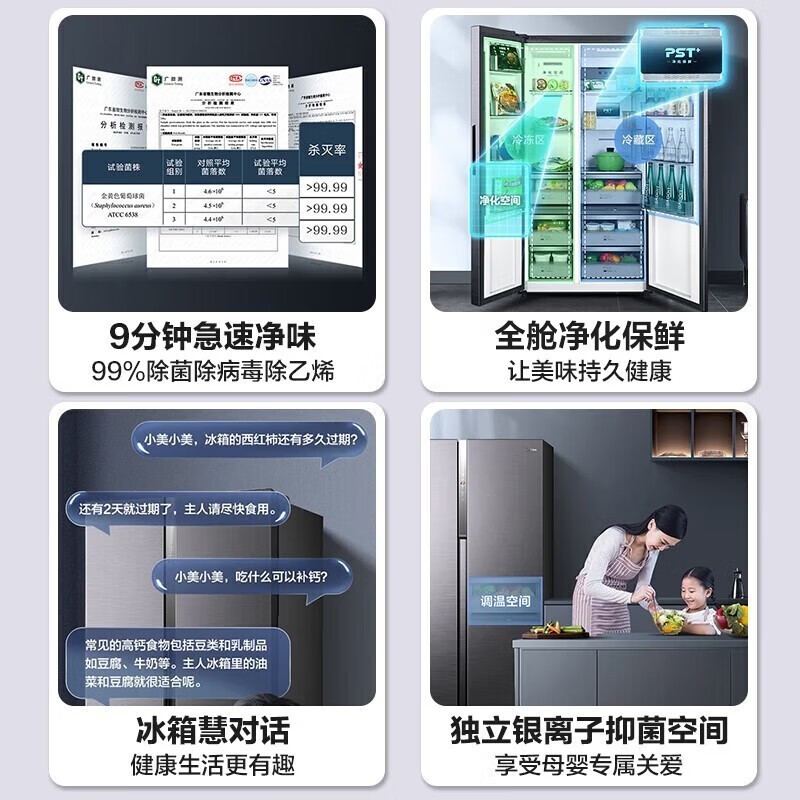 美.的601升双开门9分钟净味一级能效对开门冰箱BCD-601WKPZM(E)
