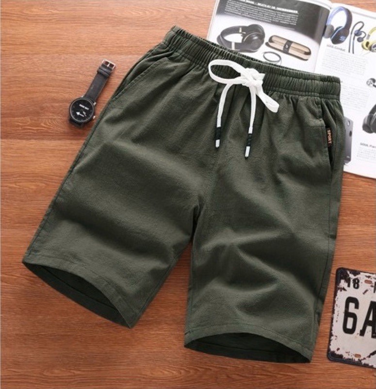 【台湾发货】A2C影片实拍微弹棉麻布料夏季 男生短裤 百搭松紧腰围短裤 休闲短裤 男士短裤 海滩风 实搭五分短裤 短裤