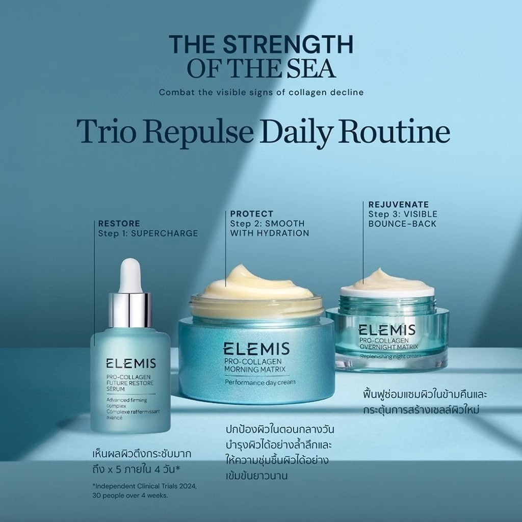 การฟื้นบำรุงผิวในช่วงค่ำคืนด้วยความชาญฉลาดจากเทคโนโลยีของ ELEMIS ได้ผ่านการทดสอบทางการแพทย์แล้วว่ามีผลลัพธ์ที่ดีหลังการใช้ ทำให้ผิวเรียบเนียนขึ้น ผิวดูแน่นตึงเนื่องจากความชุ่มชื้น และการผสานของส่วนผสมอันทรงพลังของ Padina Pavonica, Microalgae, Drone Peptide Technology และ Wild Indigo Oligosaccharides เพื่อช่วยผิวให้ฟื้นคืนความสมดุลและสวยสมบูรณ์แบบ
