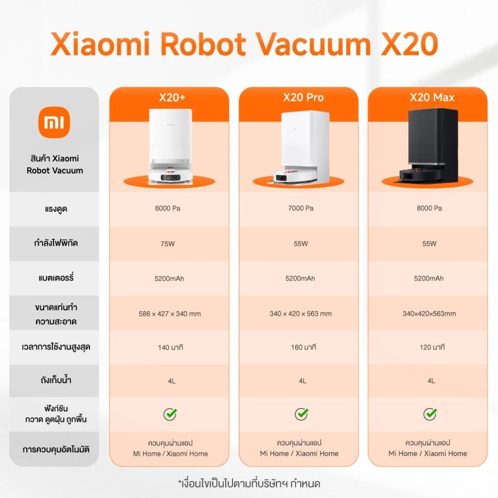 Xiaomi Robot Vacuum X20 Max/X20+/X20 Pro การเก็บฝุ่นอัตโนมัติโดยไม่ต้องล้าง เลเซอร์นำทาง LDS เชื่อมต่ออัจฉริยะ