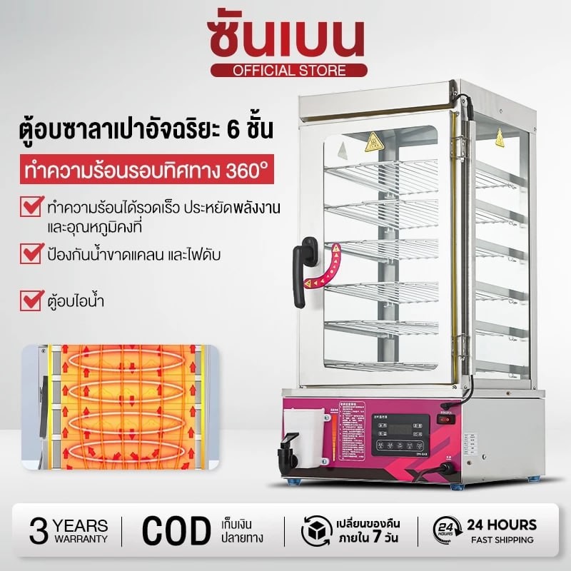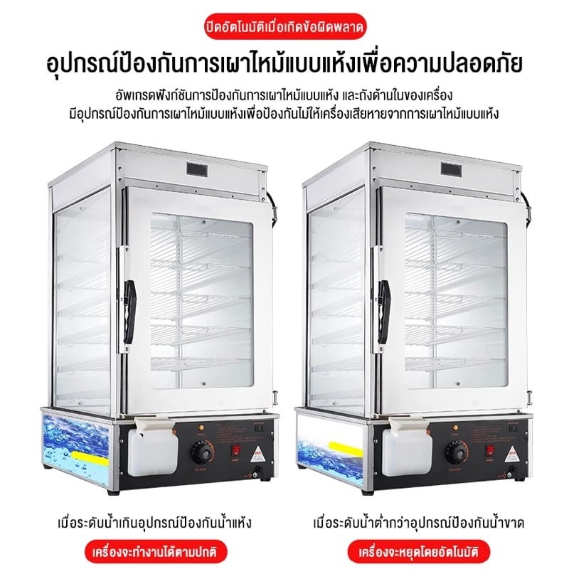 SHANBEN ขนมจีบเชิงพาณิชย์ เครื่องนึ่งไฟฟ้าสำหรับซาลาเปาและขนมจีบ ตู้นึ่งโชว์ซาลาเปาขนมจีบ