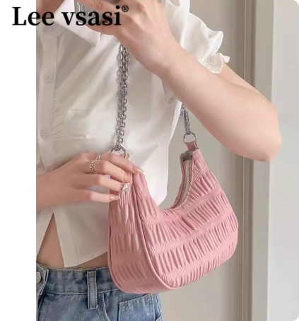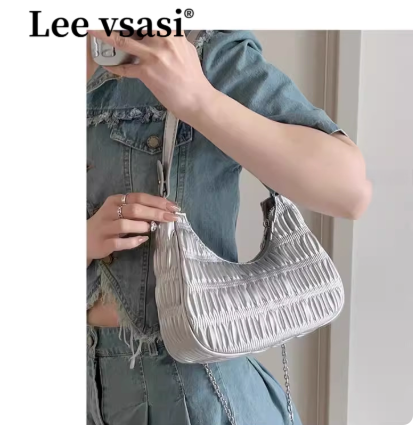 Lee vsasi小众设计褶皱包包女2025春夏新款潮单肩斜挎包百搭ins