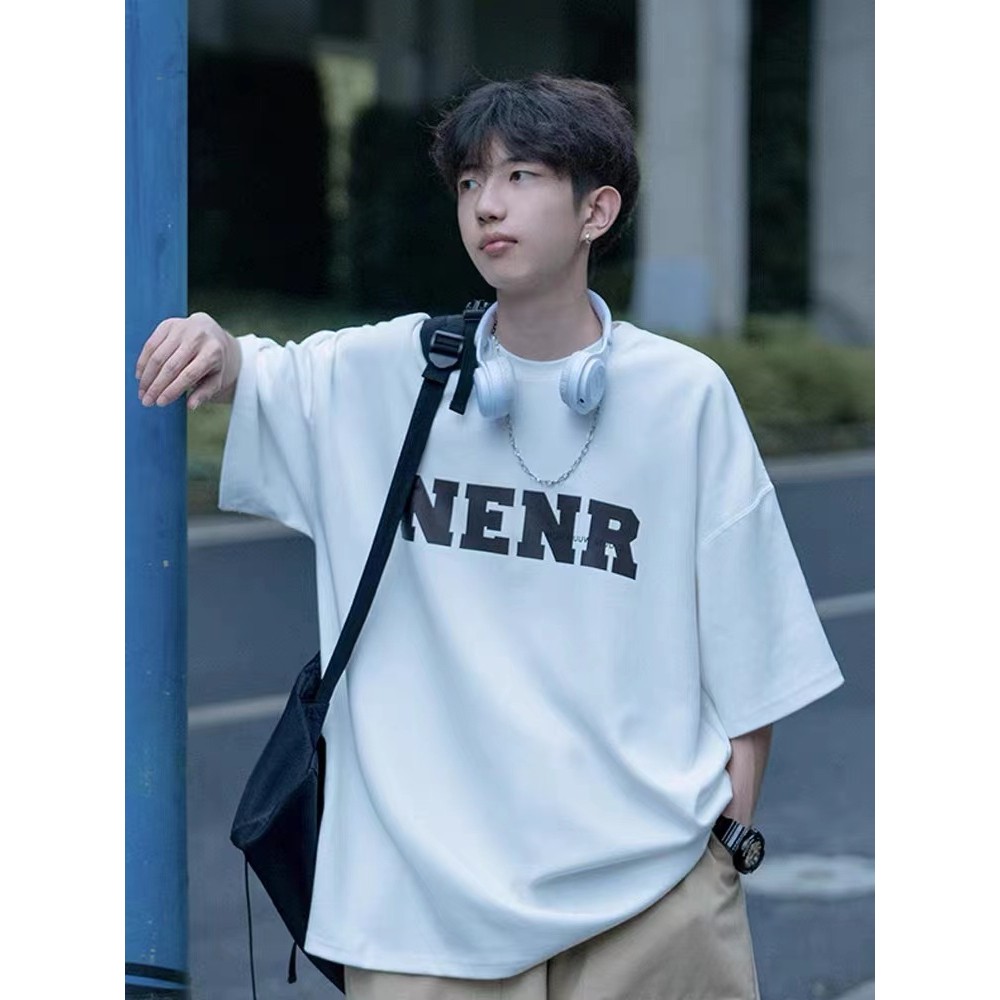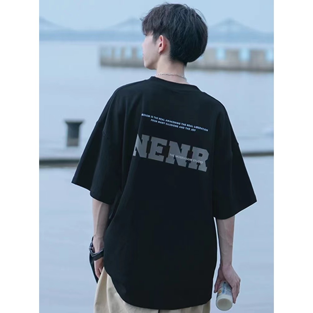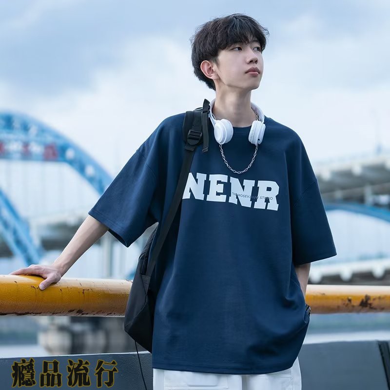 M-8XL 夏季潮牌字母印花圆领短袖T恤 男生短袖T恤 男潮流嘻哈宽松休闲青年半袖体恤 五分袖T恤 短T『瘾品流行』