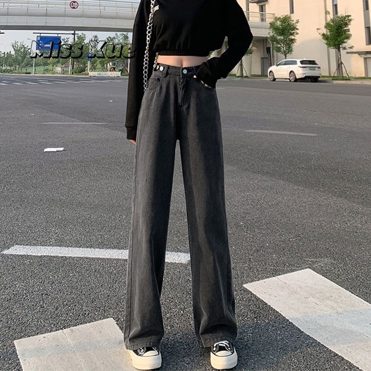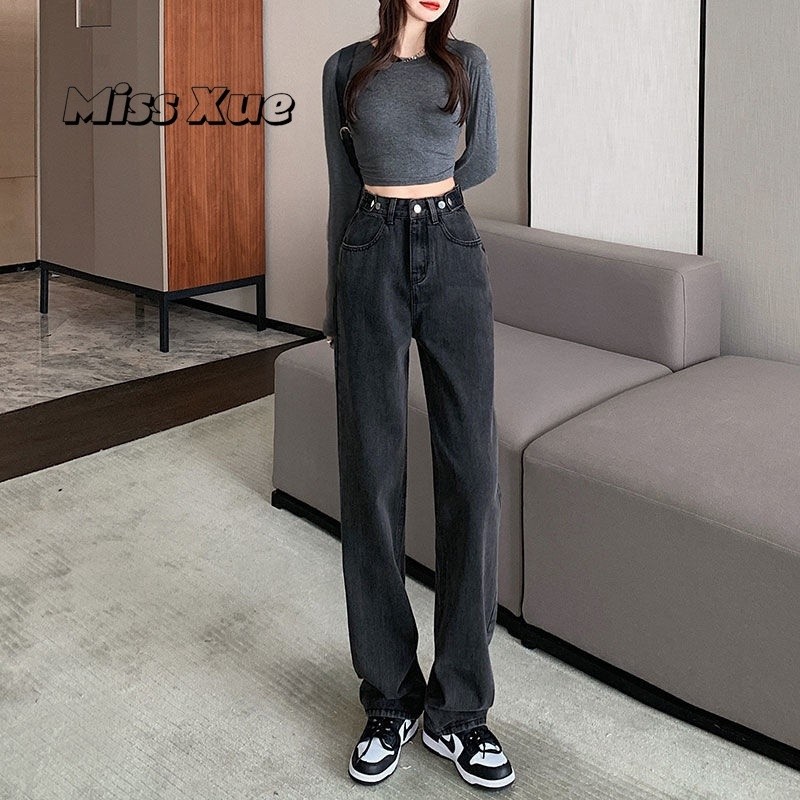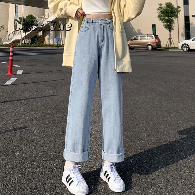 【Miss Xue】台湾出货直筒裤 宽松 牛仔裤女 高腰 浅色 高腰 显瘦 小个子 拖地裤 阔腿裤 女生裤子 长裤女