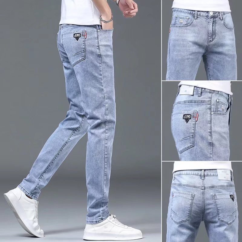 兰博基尼 春夏款男装休闲牛仔裤微弹烫钻柔软蓝23730