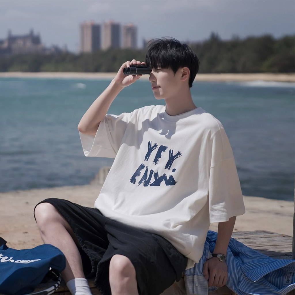 Zaer 短袖t恤 下半身失踪 美式复古短踢 男女同款 大尺码oversize 上衣 字母印花 夏季宽松落肩休闲 高街